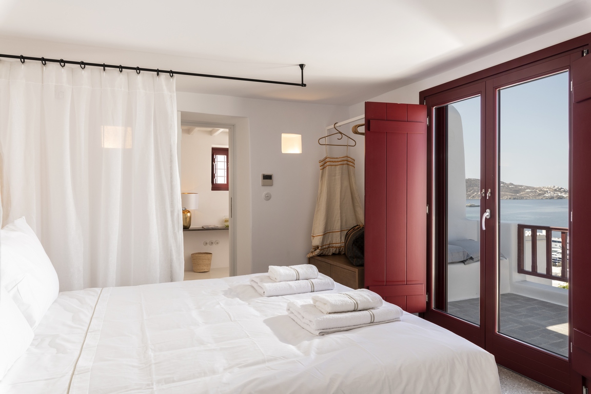 The master bedroom features a king bed with entrance to a large terrace with an incredible sea view. Guests can also perfectly lounge in the in the elegant living room.
